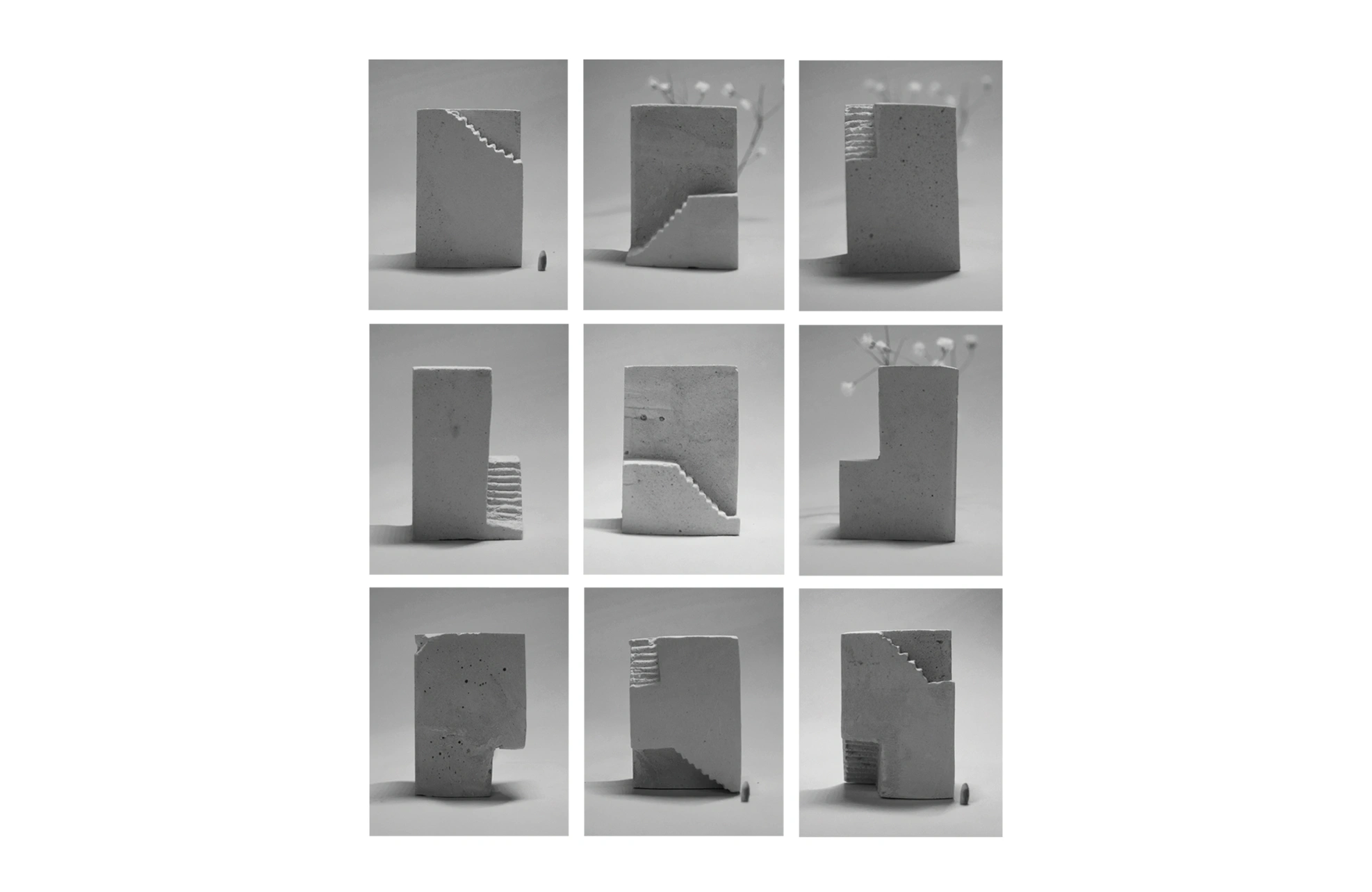 This series of photographs display the evolution during the course from the exploration of spontaneous form making to a systematized approach, where even the variations are systematized.