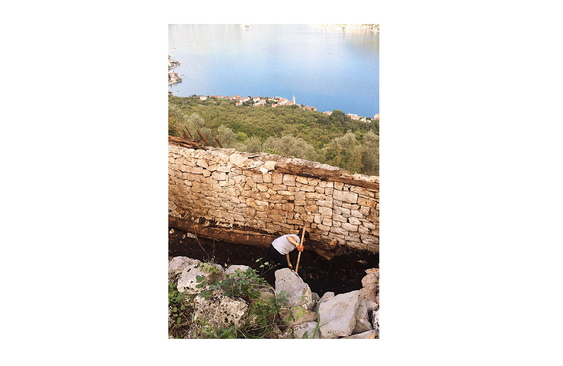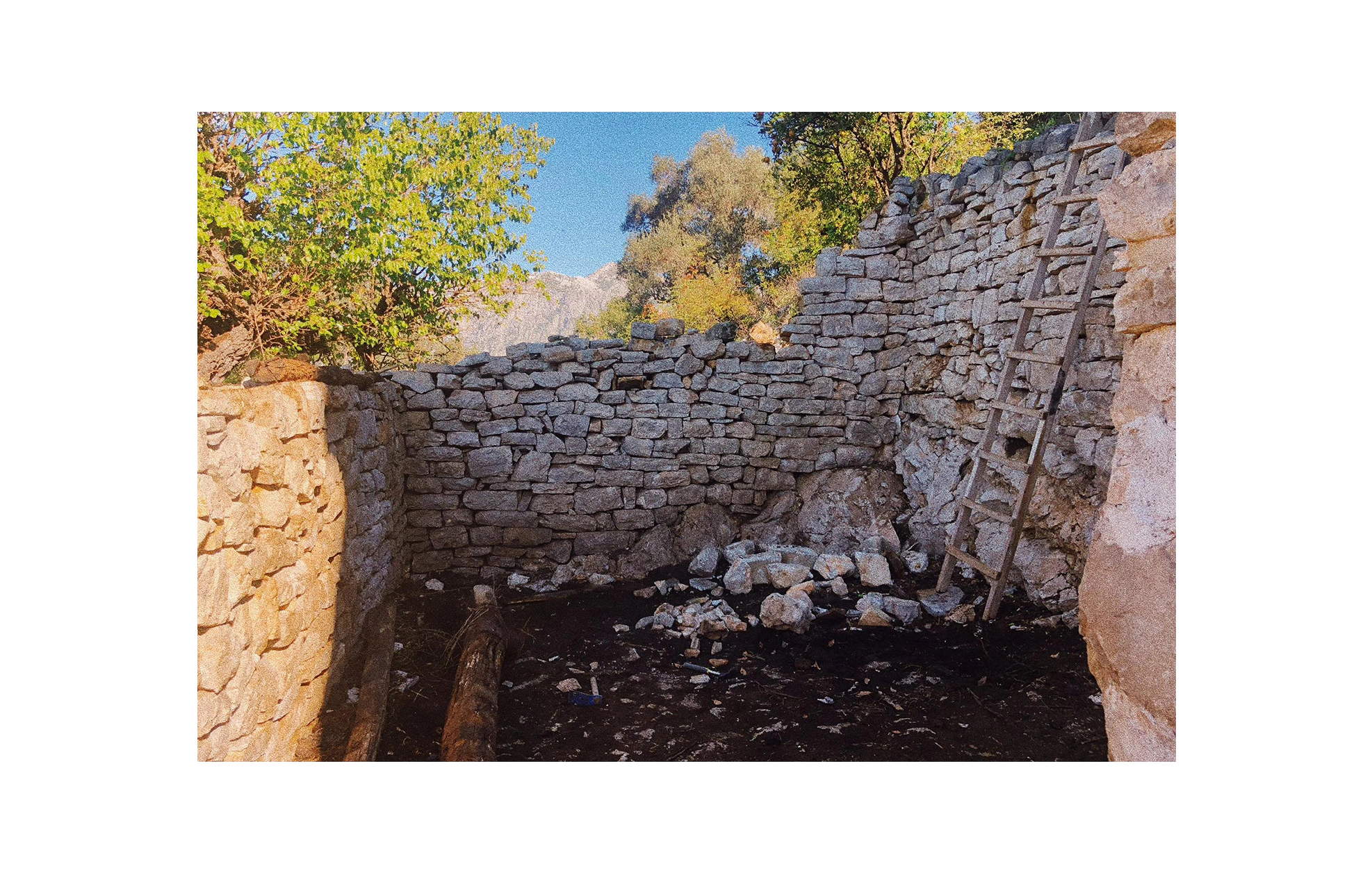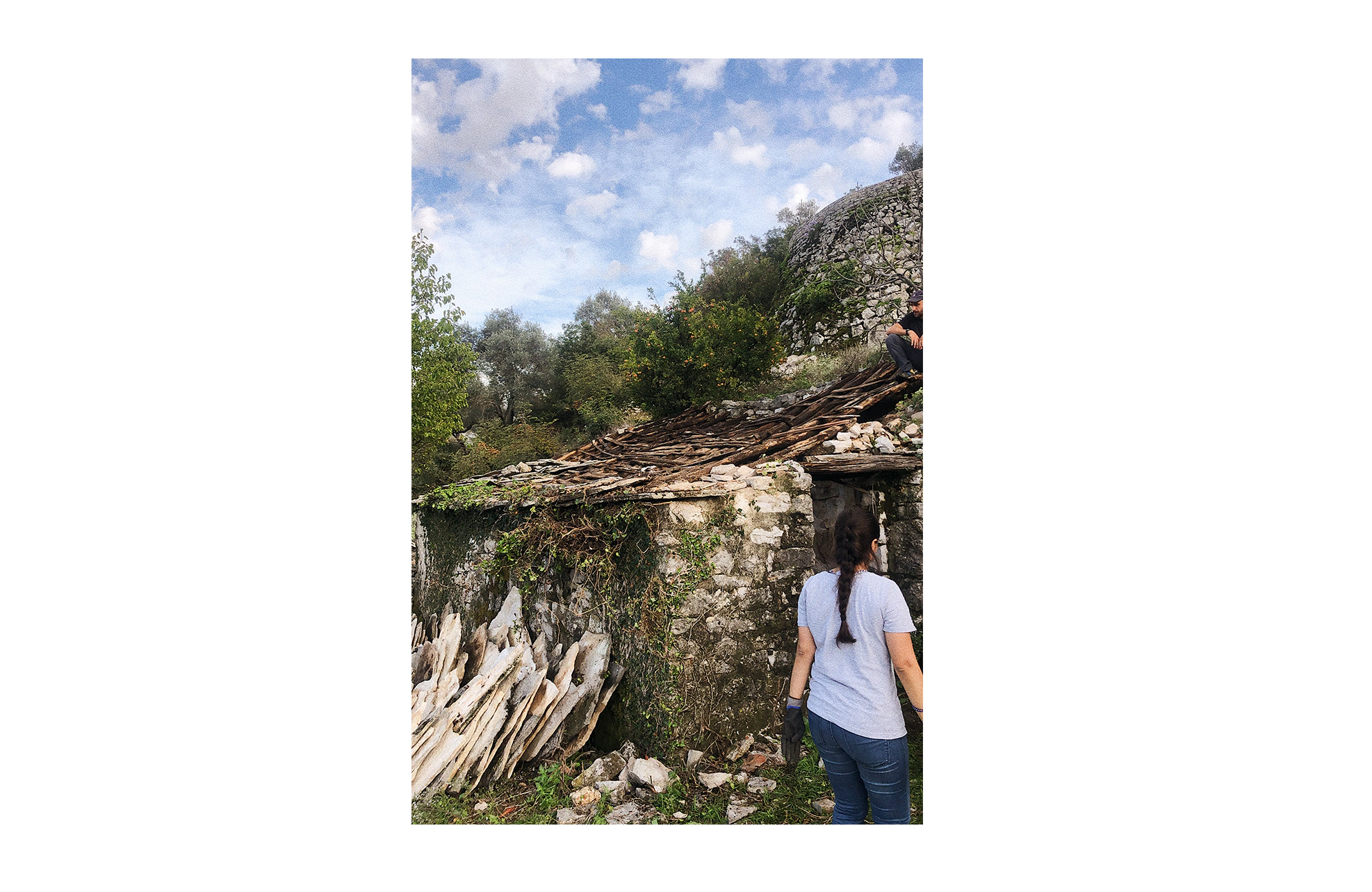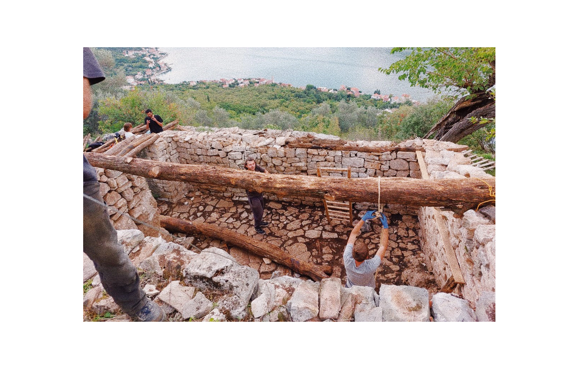 Works on this European Heritage Volunteer project included the restoration of a stone-slab covered structure, the last of its kind in Gornji Stoliv in Montenegro. The structure was firstly documented through a survey and photography. Then, the stone slab roof was disassembled, including the rotten beams underneath. New beams were brought up to the site in order to reassemble the roof structure.