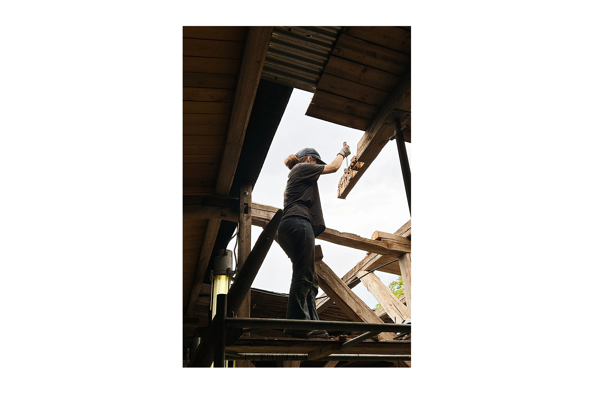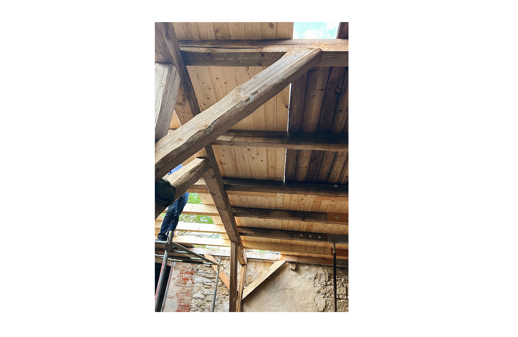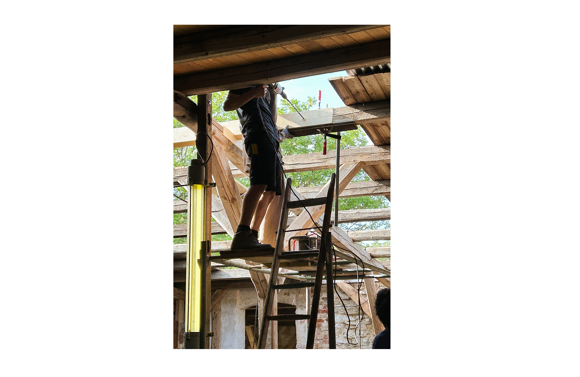 The team was tasked with the deconstruction and construction of part of the wooden roof. During the project, the eroded parts of the construction were disassembled and partly/completely replaced by new components. For instance, the rotten parts of the beams were cut, replaced with new timber and connected using traditional joints.
