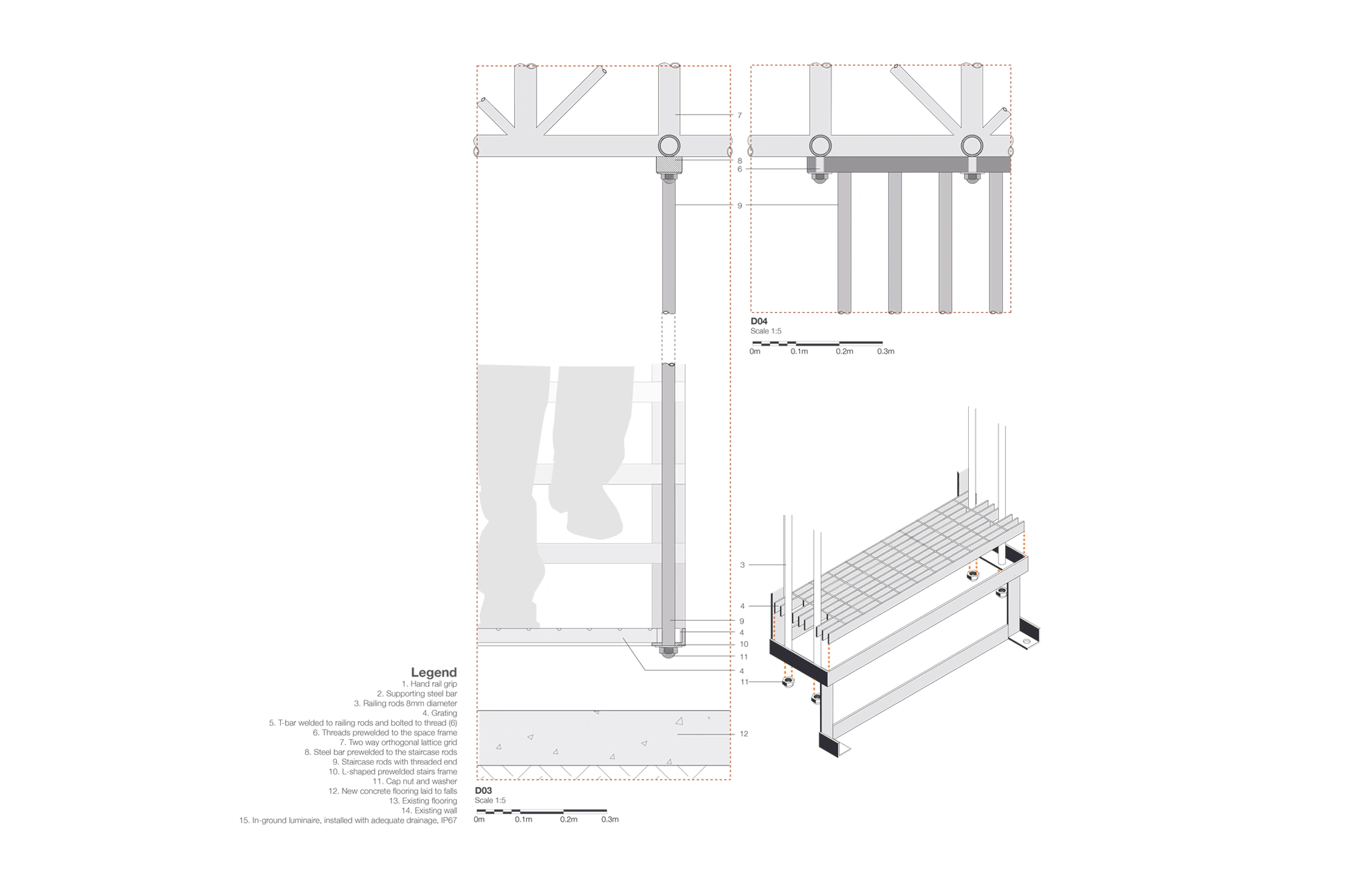 As a ruin, the BoP’s identity has evolved. The predetermined programme as laid out by the building’s function has been broken through a process of deformation. It is now a place to explore, to discover, to play. From a fort closed within itself, it is now open, a wound, in the countryside. The proposal aims to respect the newfound freedom through a permeable intervention that allows exploration in and around the structure while honouring the massing and volume that it used to have. The space frame structure and the observation deck are a nod towards the 19th century silhouette and the original observation use at the highest point.