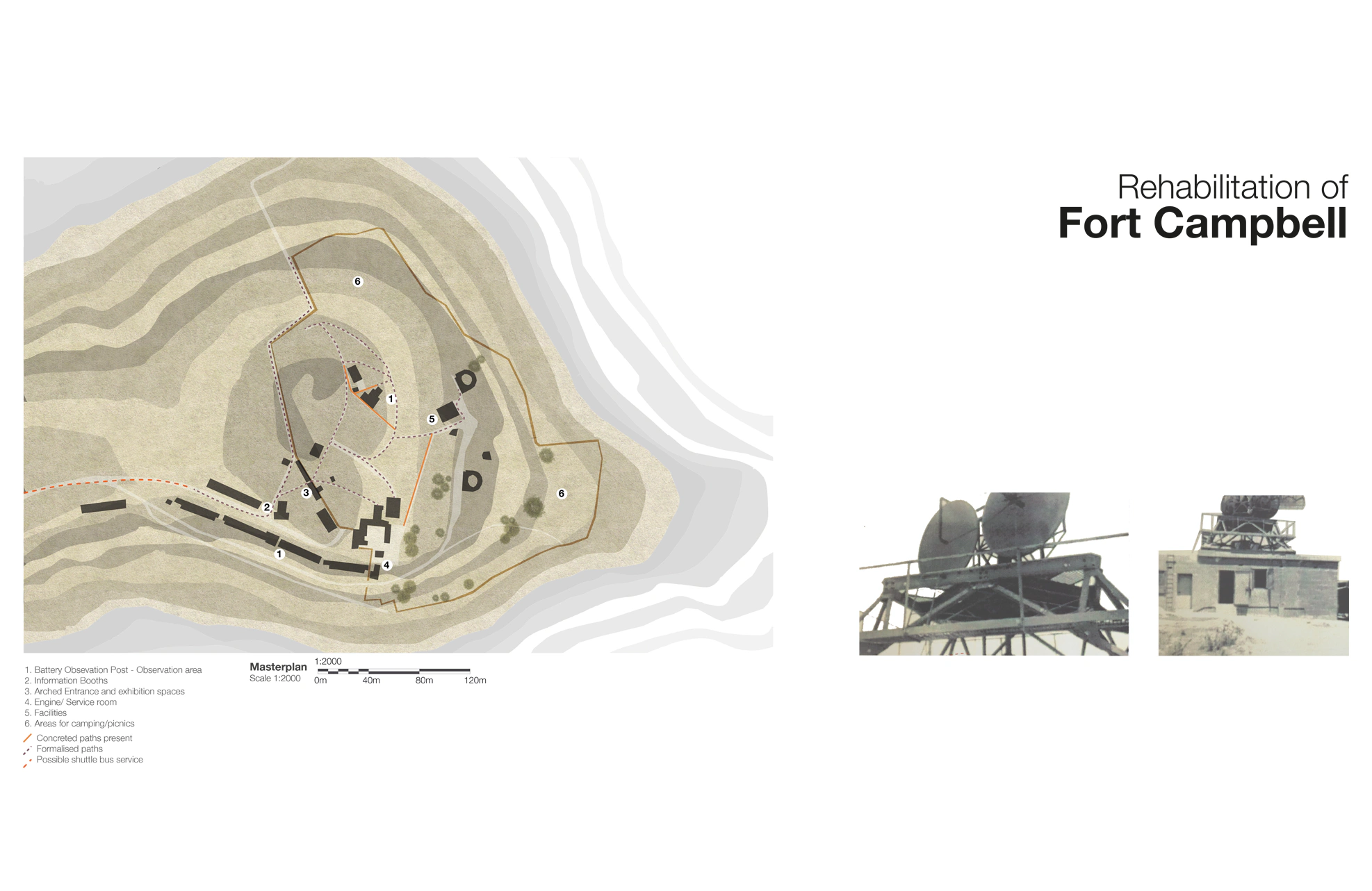 In understanding the values surrounding the dilapidated 20th century British Fort ‘Campbell’ and its context, it is possible to propose a plan for its regeneration strategy. Values relate to typological and architectural ones, which allow the appreciation of the Fort as a piece of military architecture; and to social and symbolic ones, which relate to the ruin’s current situation and its informal recreational use.