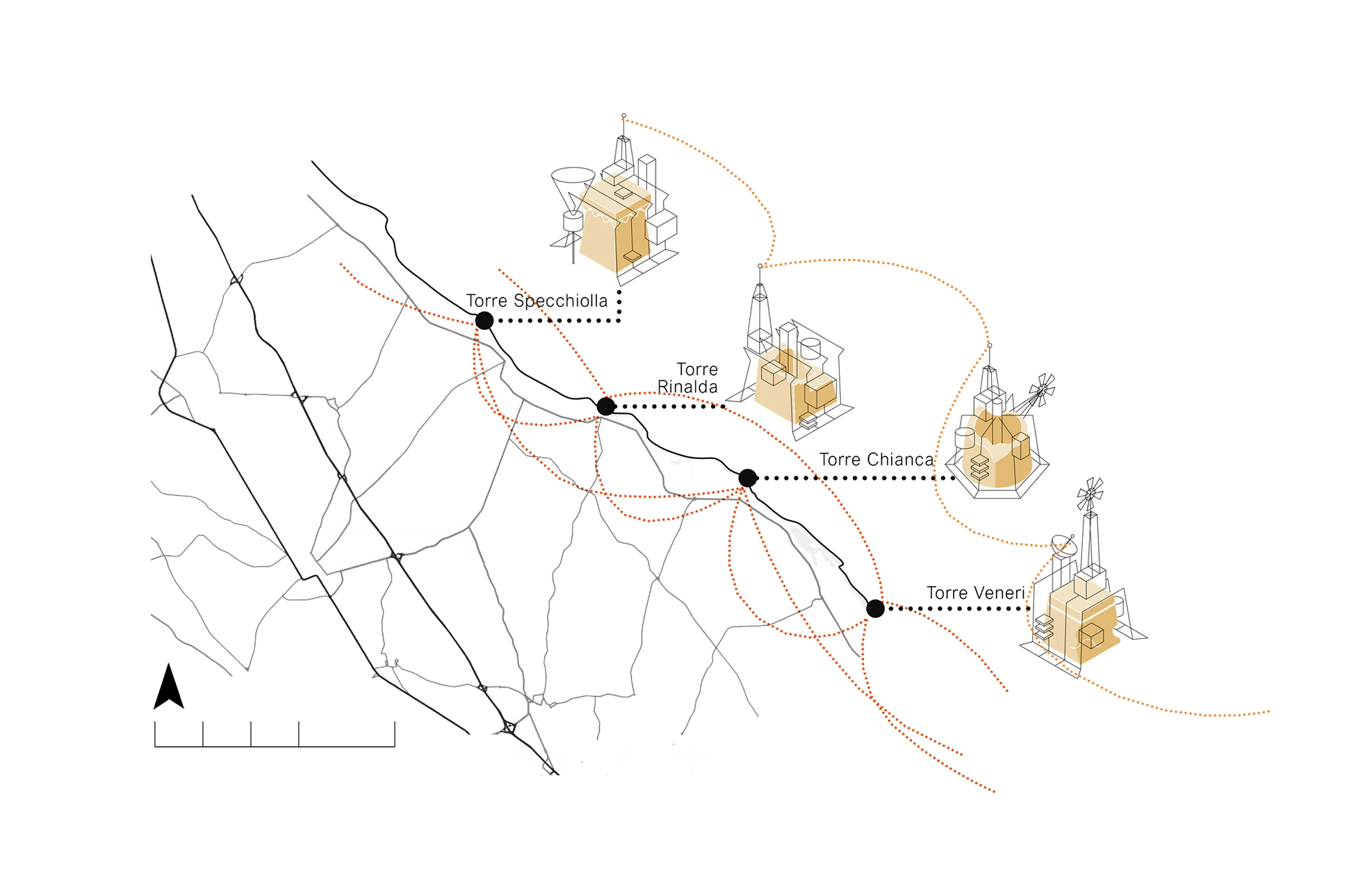 This project is a conceptual entry between myself and my colleague Maria, where we explored the potential reuse of the ruins of a historic tower. Torre Rinalda, along with other neighbouring towers along the Italian coastline, was part of a coastal protection system. Its social and historic value lay in the peace of mind it offered to the community. This value of protection can be further enhanced in the present and future times. However, the meaning of protection has evolved. The threat of raids and sea invaders has shifted to a wide-ranged social, economical and political threats. These include emergency situations like food shortage, natural disasters, electricity shortage, homelessness and pandemics.