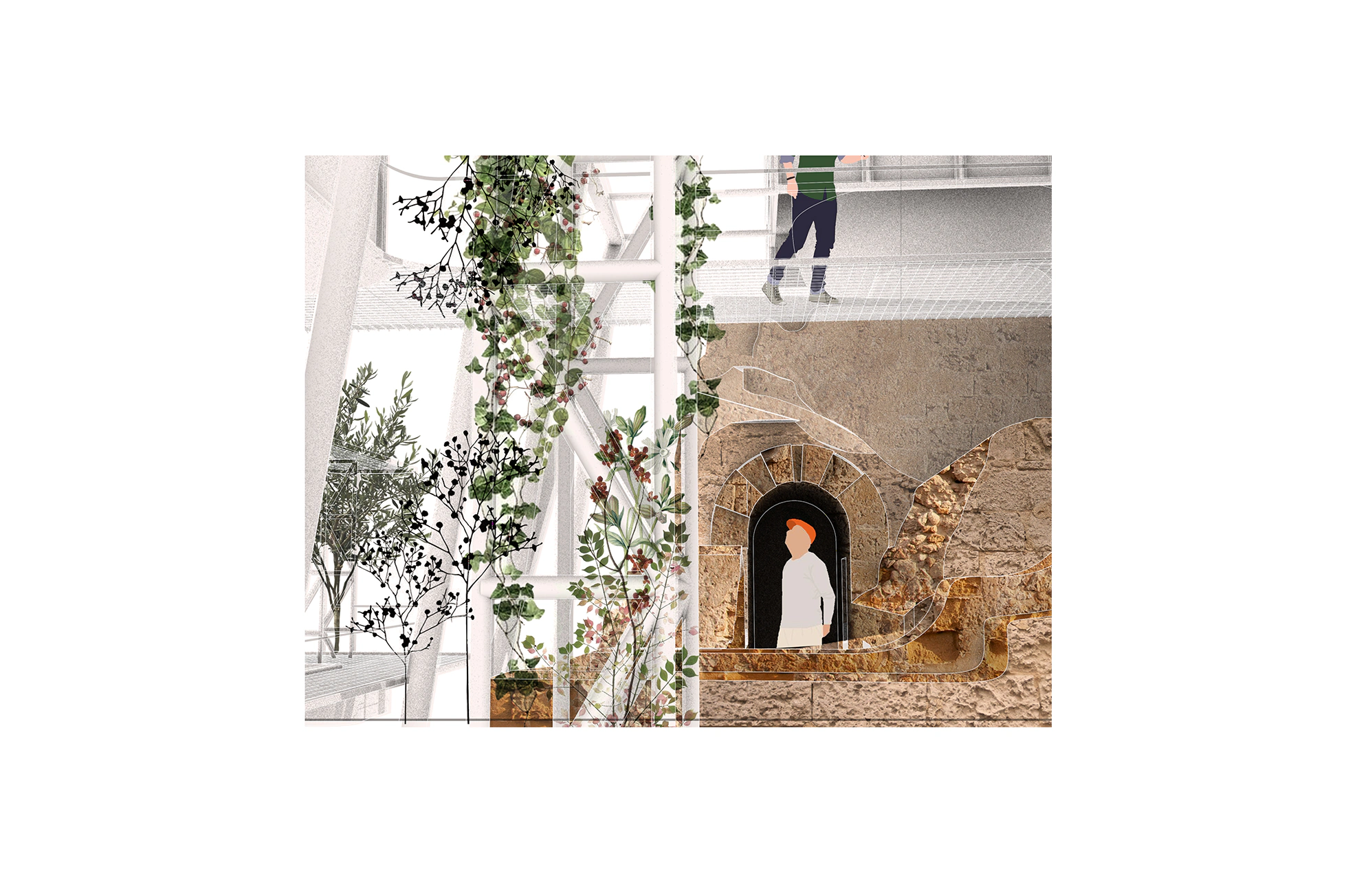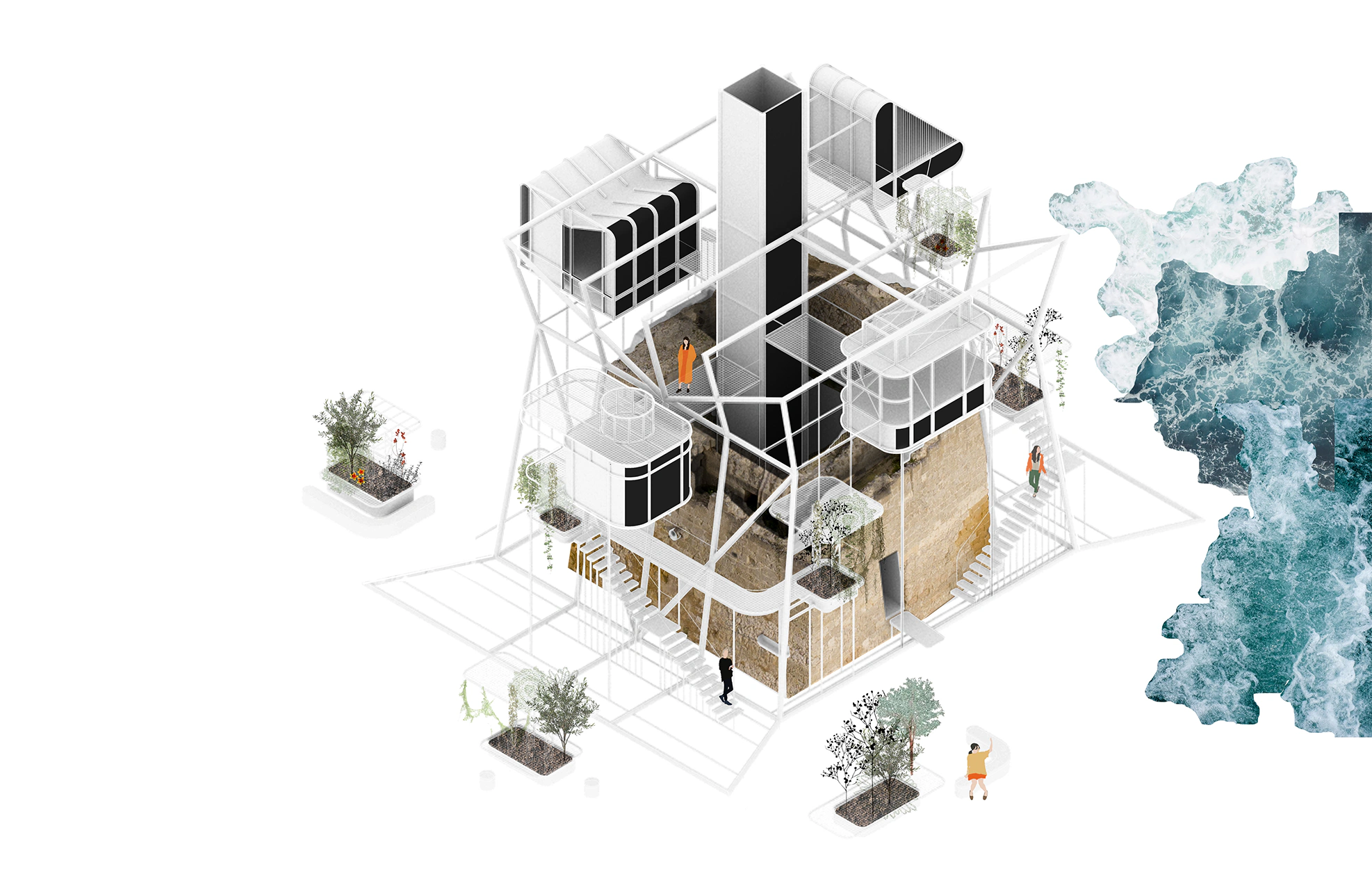 This project is a conceptual entry between myself and my colleague Maria, where we explored the potential reuse of the ruins of a historic tower. Torre Rinalda, along with other neighbouring towers along the Italian coastline, was part of a coastal protection system. Its social and historic value lay in the peace of mind it offered to the community. This value of protection can be further enhanced in the present and future times. However, the meaning of protection has evolved. The threat of raids and sea invaders has shifted to a wide-ranged social, economical and political threats. These include emergency situations like food shortage, natural disasters, electricity shortage, homelessness and pandemics.