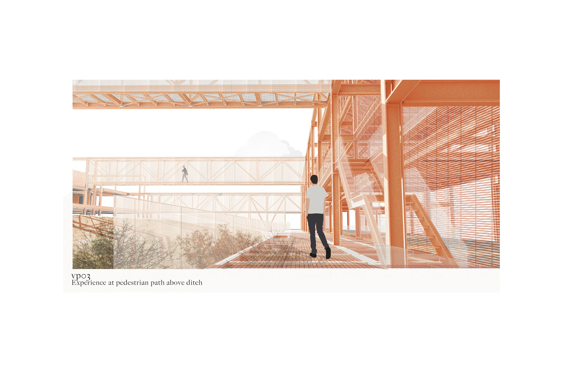 Through the exploration of possible volumes and interventions, the intervention in the voids of the vents became an application of the structure from the other activators. Designing a pathway around the different heights was not enough to transform this void into an activator. Integrating the space as part of the system meant that the resultant pods were designed as small, enclosed gathering spaces. The flow of students and researchers into the space is further consolidated by the placing of consumption quarters in the vicinity as part of the general vision of Kordin.
